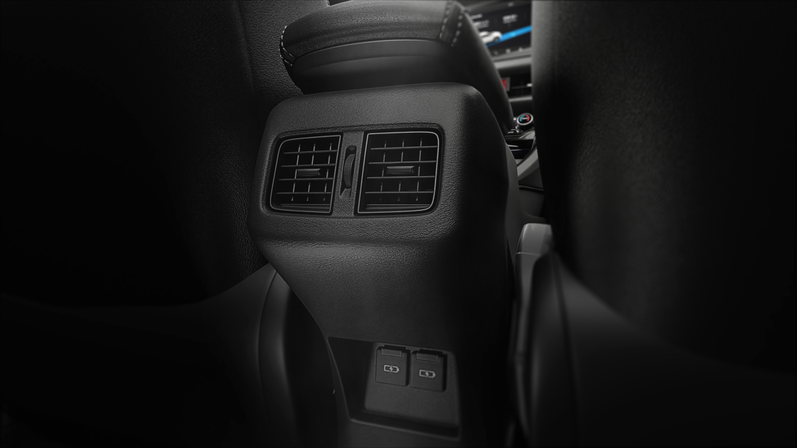 Rodas de 17" de liga leve com acabamento na cor preta, acabamento interno com partes revestidas de couro e material sintético preto, faróis de LED e retrovisor externo com rebatimento automático, pintado na cor da carroceria, com luz indicadora de direção em LED integrada.
